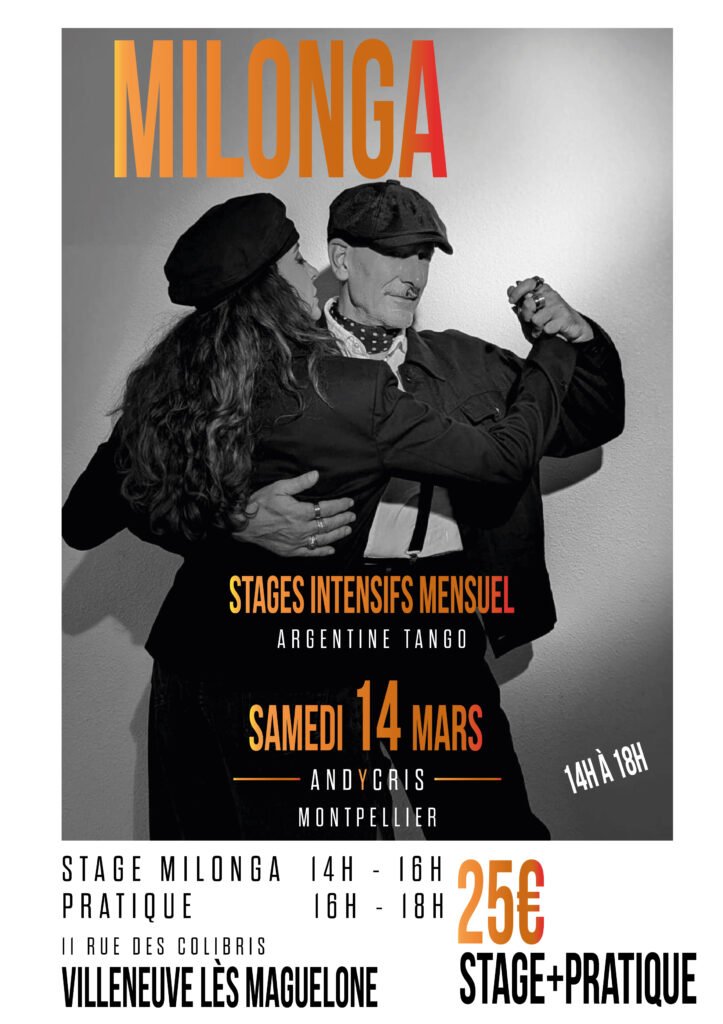 Cette année nous vous proposons d’apprendre la Milonga et la valse lors de stages intensifs de deux heures suivis d’une pratique libre et conviviales. Ces stages auront lieu une fois par mois de 14h à 16h. Venir en couple est recommandé.